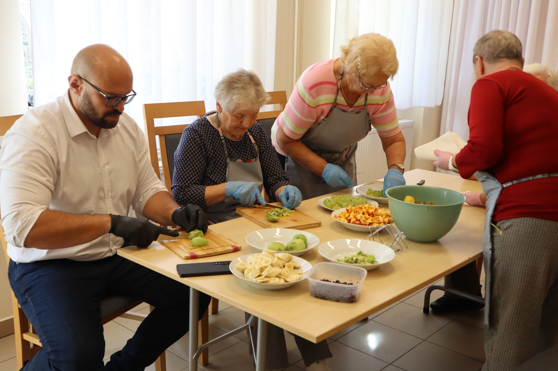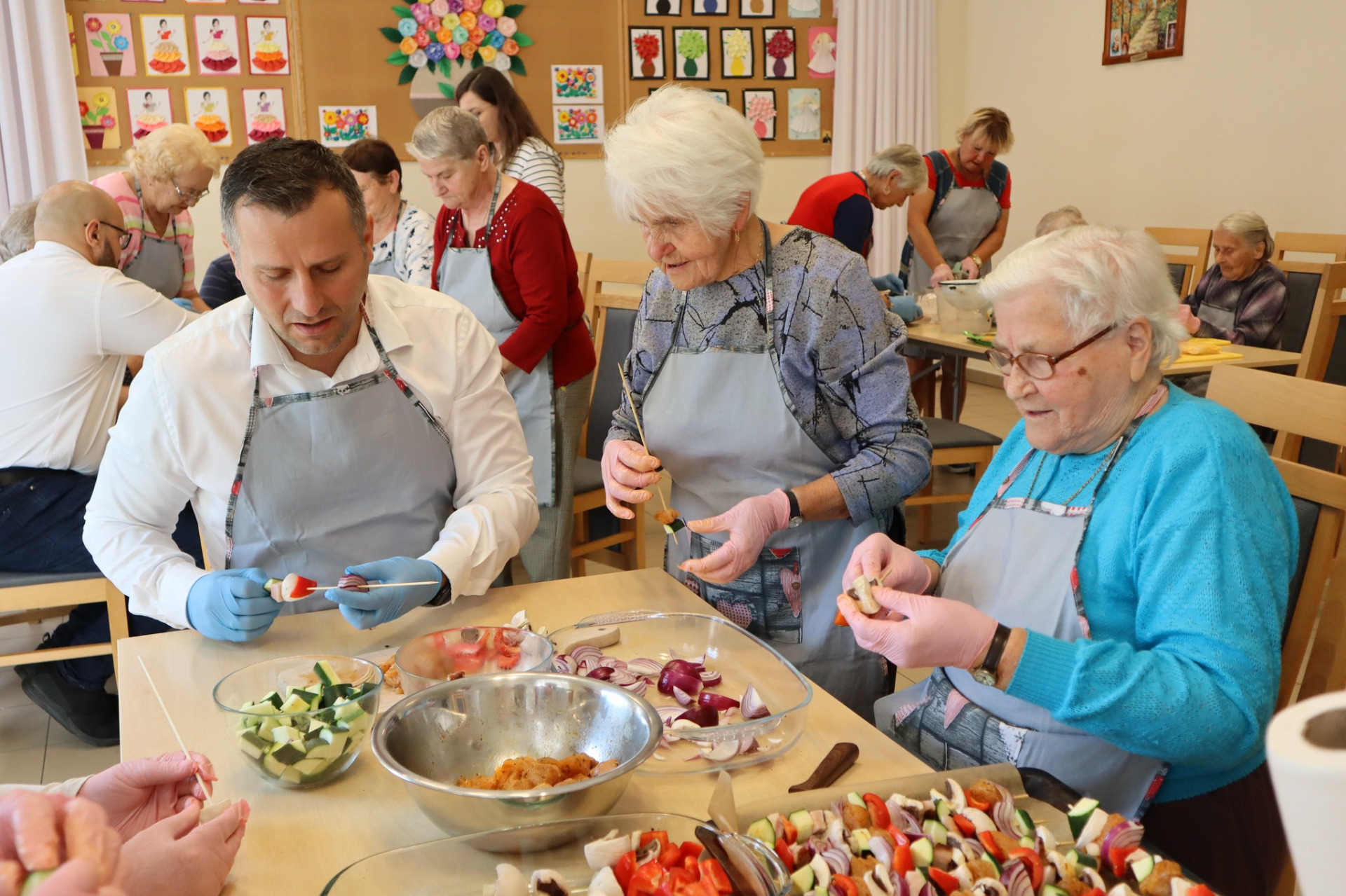 Na czwartkowe warsztaty seniorzy Dziennego Domu "Senior - Wigor" zaprosili burmistrza Głogowa Małopolskiego Tomasza Skoczylasa oraz jego zastępcę. Z ogromnym zaangażowaniem przygotowali oni wspólnie przystawkę 🥗, danie główne 🍲 i deser 🍰 – wszystko w atmosferze pełnej uśmiechu 😀, życzliwości 💐 i dobrej energii ✨. To spotkanie było nie tylko okazją do wspólnego gotowania, ale także do rozmów, wymiany doświadczeń i integracji.