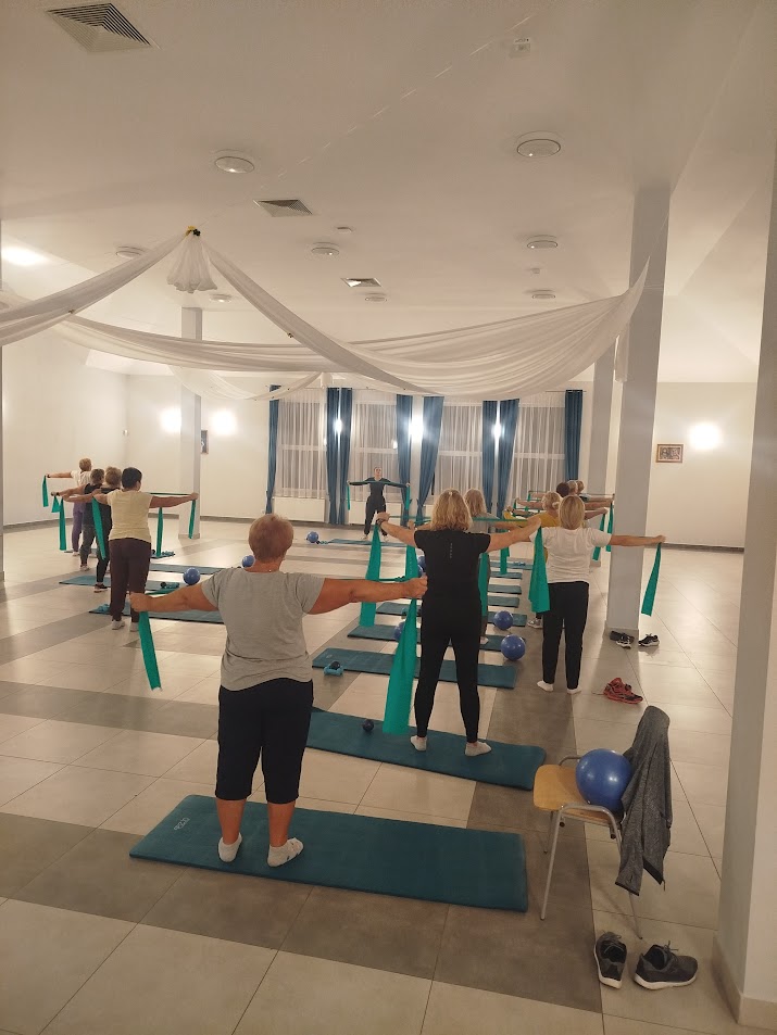 👉 Spotkania mają formę łagodnej gimnastyki wzmacniającej i rozciągającej kręgosłup, dostosowanej do możliwości osób starszych. Ćwiczenia prowadzi wykwalifikowany instruktor, a uczestnicy podkreślają, że oprócz poprawy kondycji fizycznej zajęcia przynoszą im również wiele radości i energii.