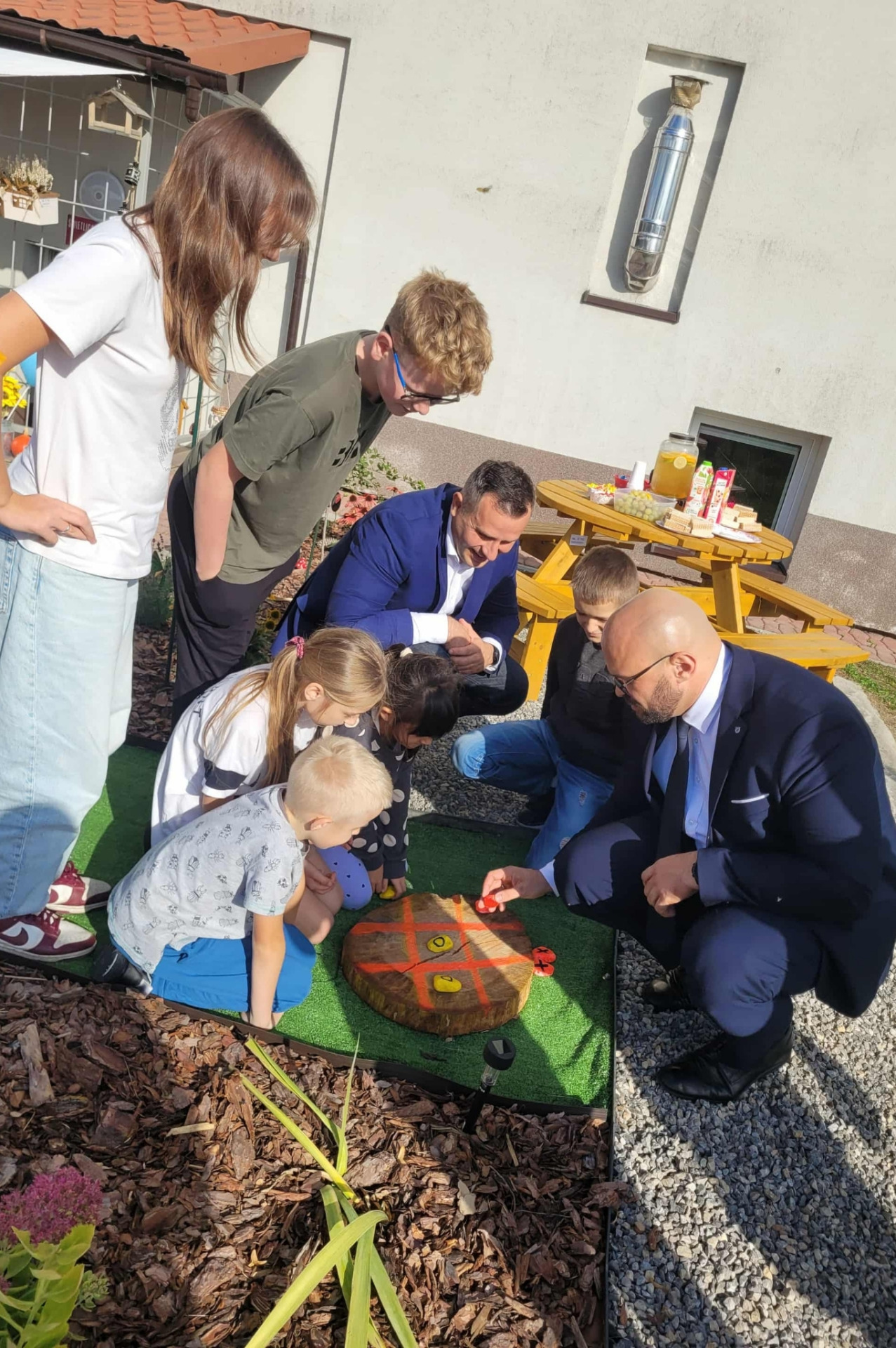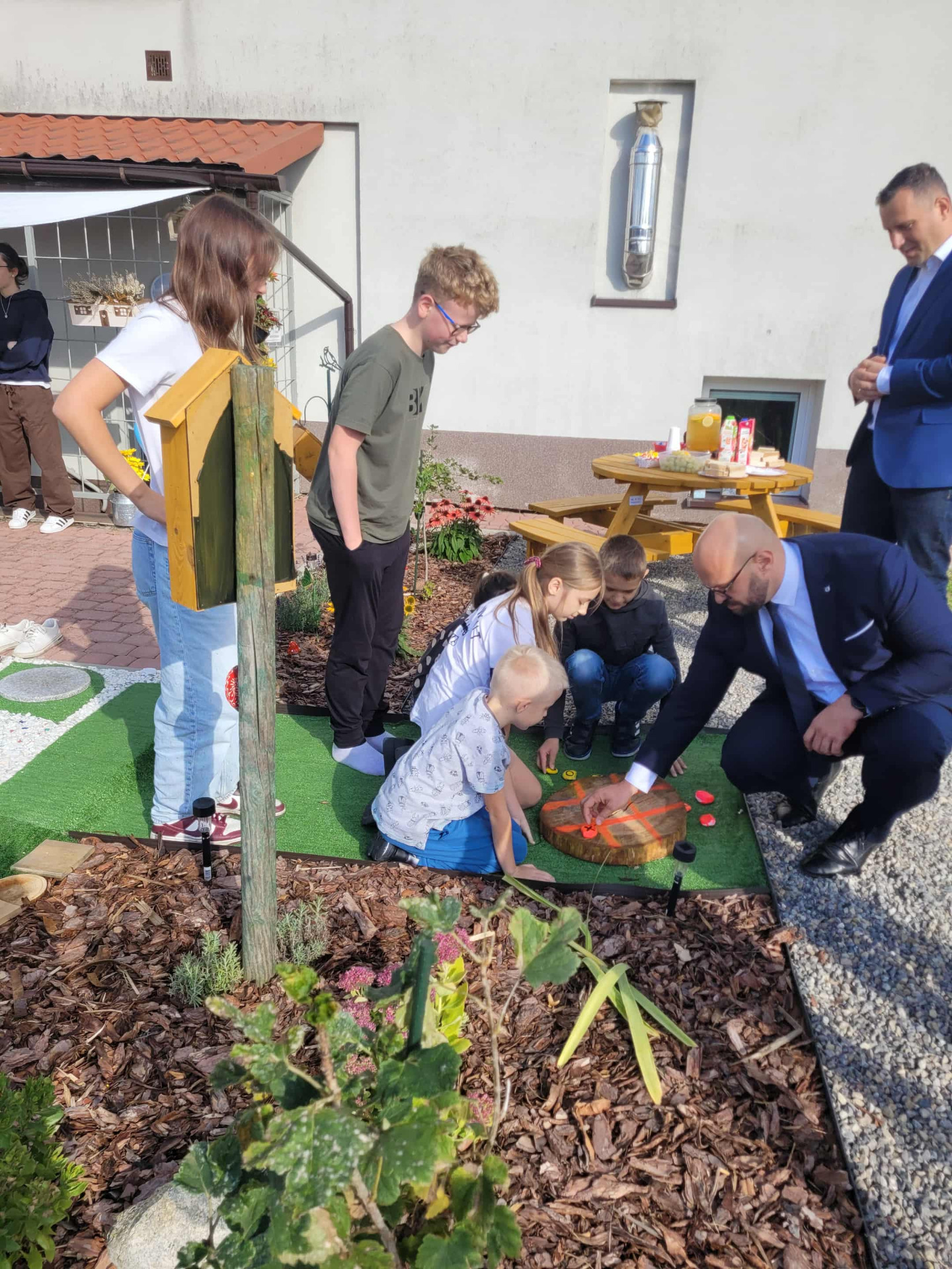 🌿Nowa przestrzeń ma służyć najmłodszym jako miejsce zabawy, relaksu i rozwijania zmysłów. Ogródek odwiedzili burmistrz Tomasz Skoczylas wraz z zastępcą, którzy zobaczyli, jak wiele radości przynosi dzieciom i jak harmonijnie wpisuje się w otoczenie świetlicy. Podczas warsztatów przyrodniczo-kreatywnych i wspólnego pikniku dzieci wraz z opiekunami symbolicznie zainaugurowały jego działanie. Wspólne tworzenie i odkrywanie natury pokazało, jak ważny jest kontakt z przyrodą i współpraca międzypokoleniowa.