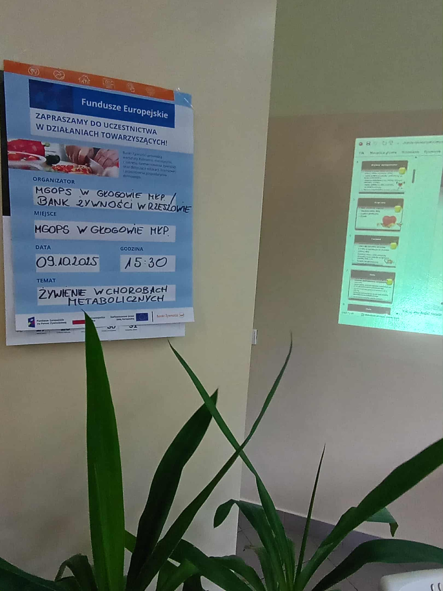 W ramach działań edukacyjnych Banku Żywności w Miejsko - Gminnym Ośrodku Pomocy Społecznej w Głogowie Małopolskim odbyły się warsztaty dietetyczne poświęcone zasadom zdrowego odżywiania i racjonalnego gospodarowania żywnością. Celem spotkania było zwiększenie świadomości uczestników w zakresie prawidłowego komponowania posiłków, zapobiegania marnowaniu jedzenia oraz wykorzystywania produktów spożywczych w sposób ekonomiczny i zrównoważony.