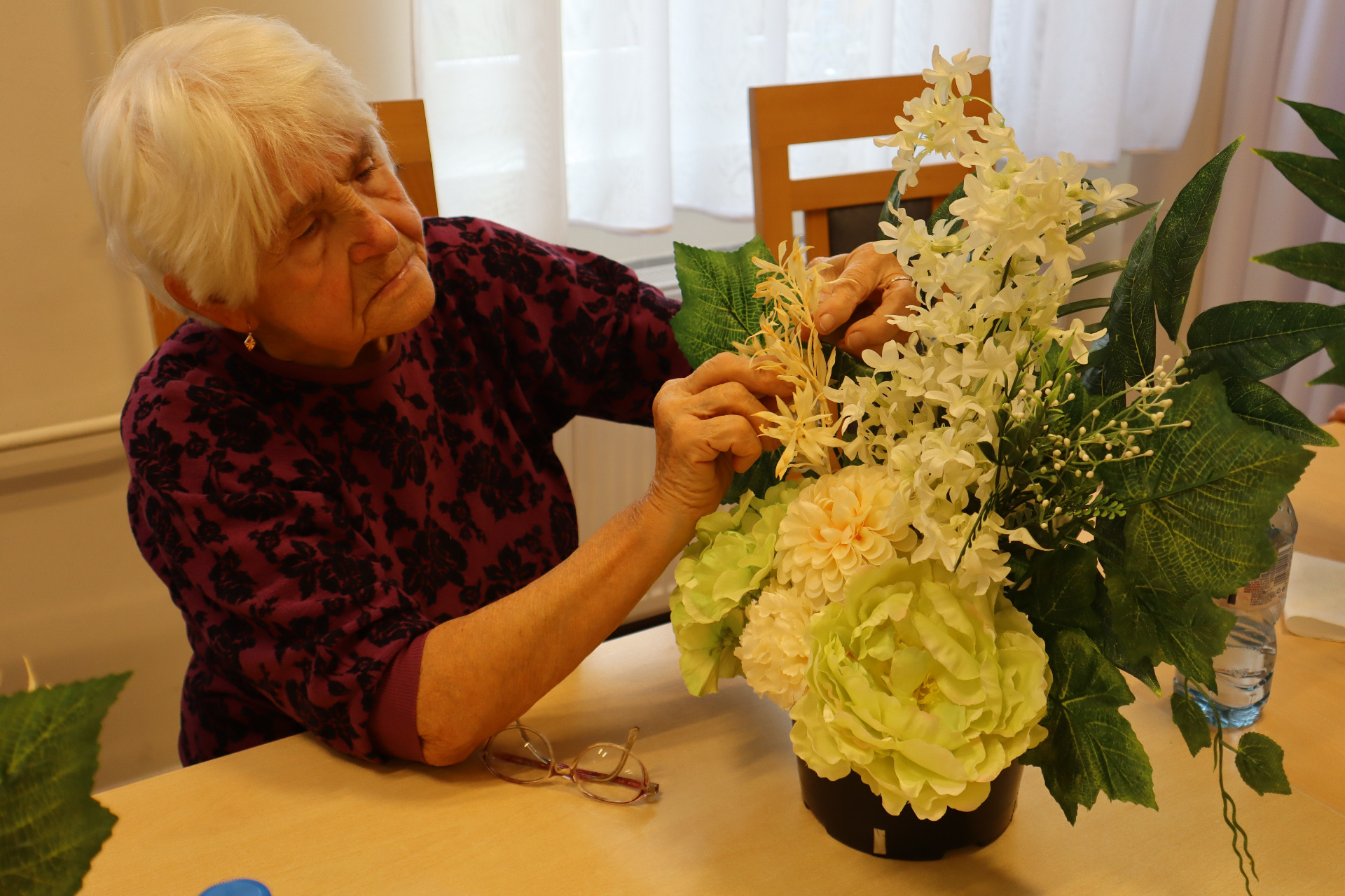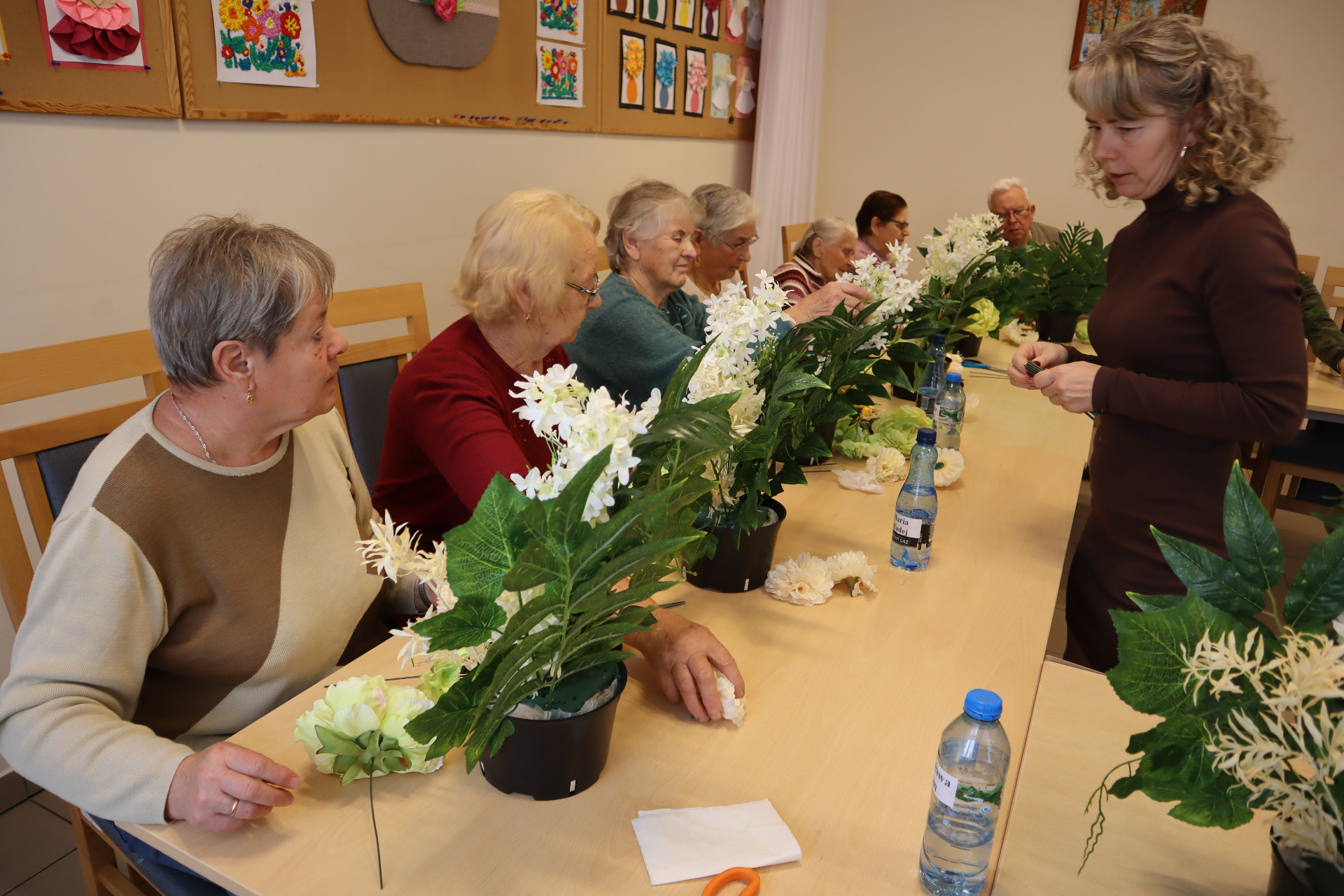 W Dziennym Domu „Senior – Wigor” odbywają się również wyjątkowe zajęcia florystyczne, które cieszą się ogromnym zainteresowaniem uczestników. Pod okiem instruktora seniorzy uczą się tworzyć kompozycje kwiatowe, poznają zasady doboru kolorów oraz techniki układania bukietów i stroików. Zajęcia realizowane są w ramach projektu z zakresu pomocy społecznej pt. „Z pasją po 60 - tce”, dofinansowanego przez Wojewodę Podkarpackiego, którego celem jest poprawa warunków do godnego i zdrowego starzenia się.