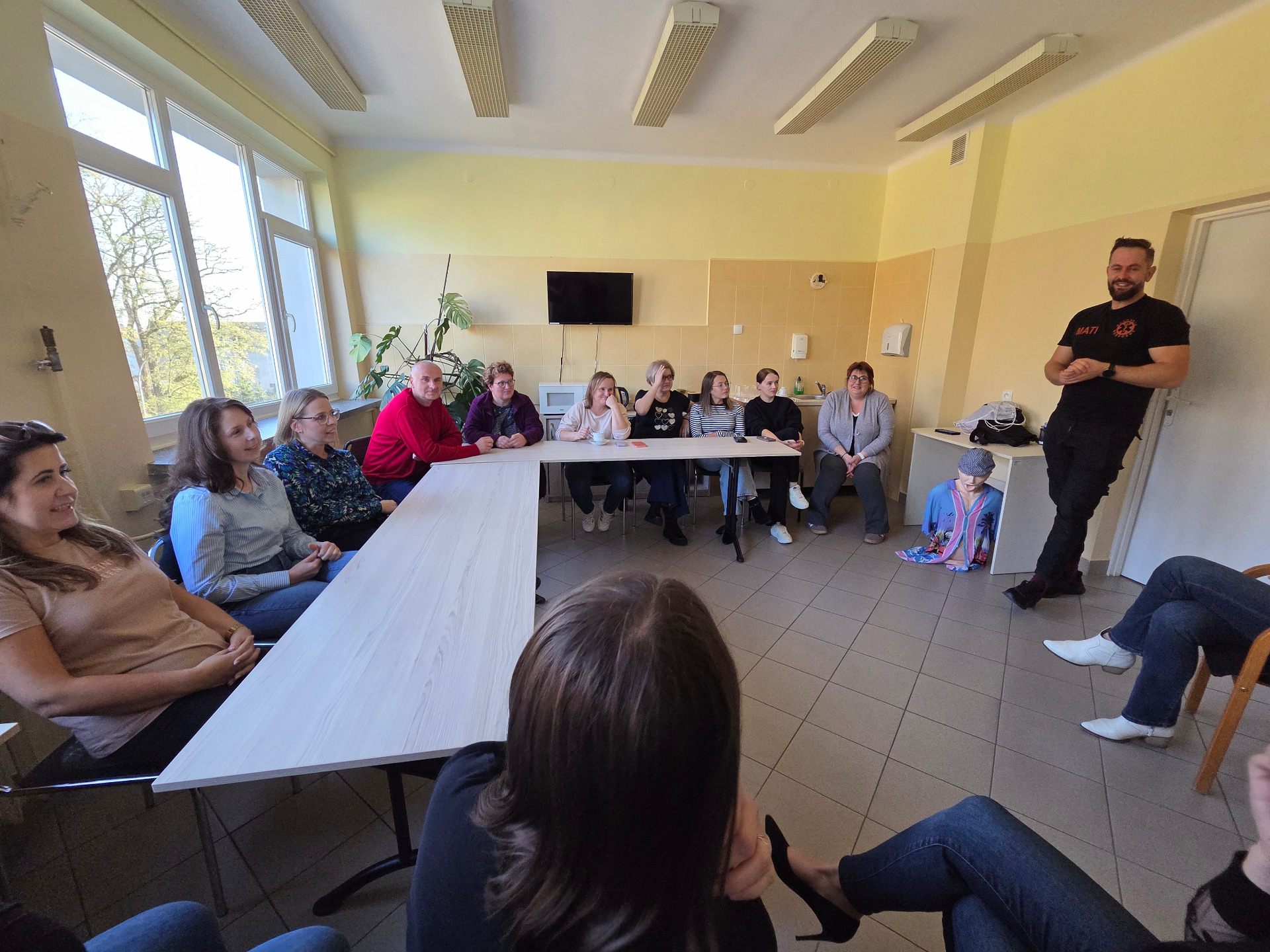 🚑 W czwartek 6 listopada br. pracownicy Miejsko – Gminnego Ośrodka Pomocy Społecznej w Głogowie Małopolskim wzięli udział w szkoleniu z zakresu udzielania pierwszej pomocy przedmedycznej. Uczestnicy mieli okazję odświeżyć i poszerzyć swoją wiedzę teoretyczną, a przede wszystkim przećwiczyć praktyczne umiejętności niezbędne w sytuacjach zagrożenia życia lub zdrowia. Ćwiczenia pozwoliły nabyć pewność w działaniu i utrwalić właściwe reakcje w momentach kryzysowych.