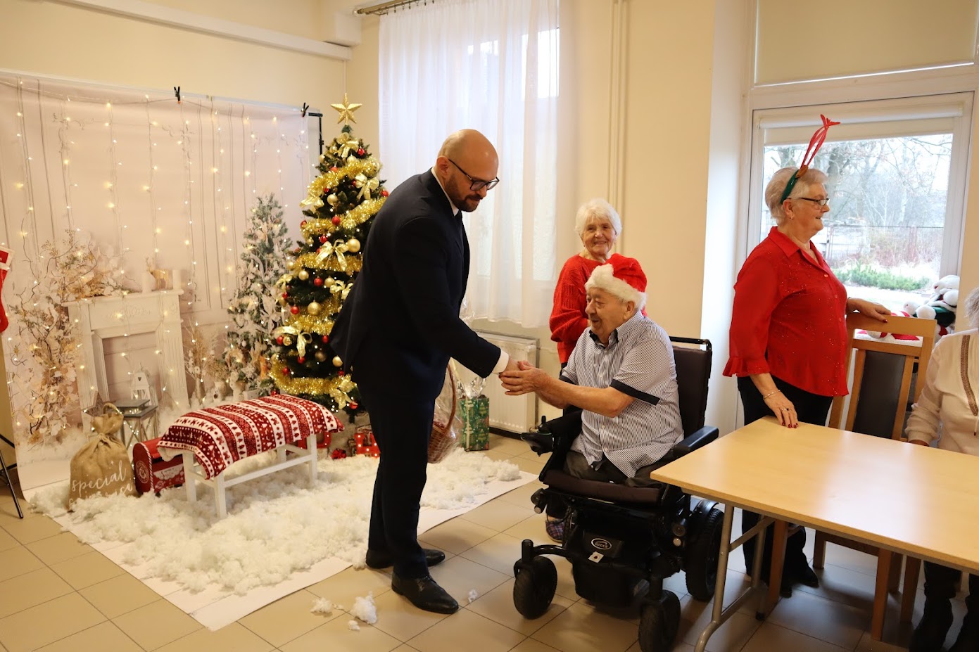 🎅Kulminacyjnym momentem wydarzenia było rozdanie mikołajkowych upominków. Seniorzy z radością odbierali prezenty, a w całej sali unosiła się serdeczna, świąteczna atmosfera. Tegoroczne Mikołajki po raz kolejny udowodniły, że w naszej placówce tradycja i wspólnota odgrywają niezwykle ważną rolę, a sam dom pozostaje miejscem pełnym życzliwości i międzypokoleniowego ciepła.