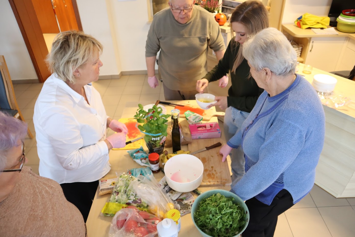 W Dziennym Domu „Senior-WIGOR” w Budach Głogowskich odbyły się Warsztaty Zdrowego Stylu Życia, obejmujące praktyczne zajęcia z zakresu przygotowywania lekkich i zdrowych posiłków. Uczestnicy z dużym zaangażowaniem i entuzjazmem przygotowywali pełnowartościowe, lekkostrawne potrawy, jednocześnie zdobywając praktyczną wiedzę na temat zasad zdrowego odżywiania.